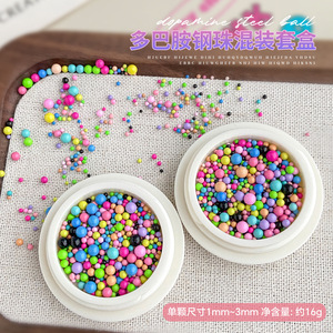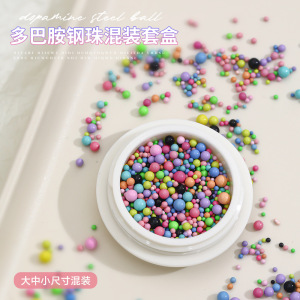 网红多巴胺钢珠美甲饰品混装大小号立体马卡龙钢珠球套盒美甲配饰