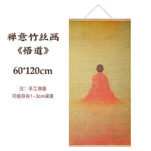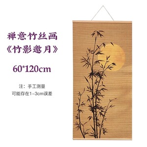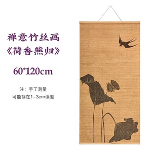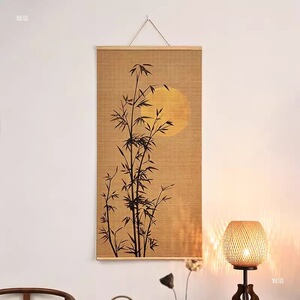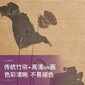 新中式客厅装饰画禅意茶室印花竹帘挂画书房背景卷轴荷花挂画壁画