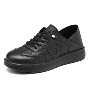 代发真皮软底妈妈单鞋秋季平底舒适免系带女鞋防滑圆头皮鞋801328