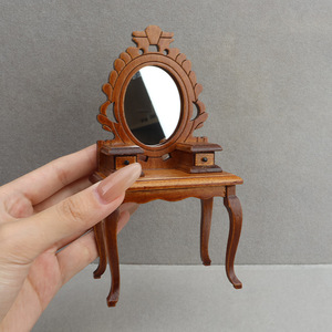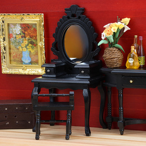 1:12娃娃屋dollhouse迷你小家具模型微缩卧室场景复古梳妆台凳子