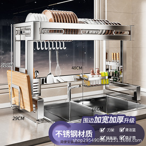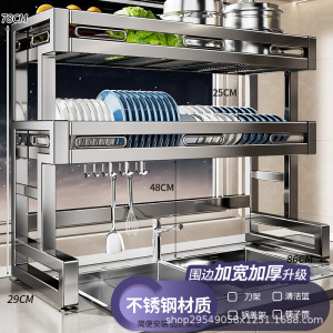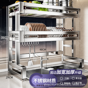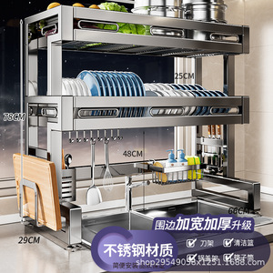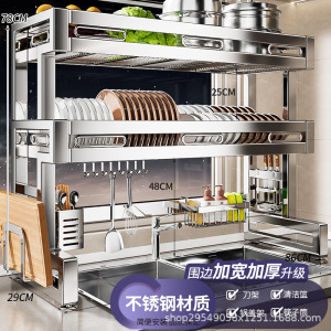 【304不锈钢】双层76cm全配(刀架+砧板架+筷筒+洁具篮)