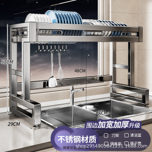 90%家庭首选 【304不锈钢】双层86cm全配(刀架+砧板架+筷筒+洁具篮)