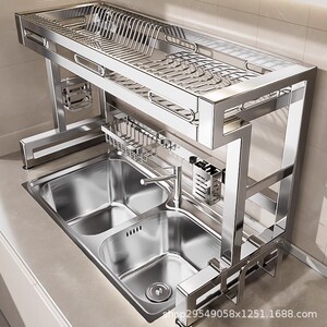 304不锈钢厨房水槽置物架多功能水池洗碗槽碗碟收纳放碗盘沥水
