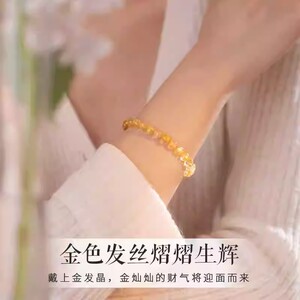 天然金发晶素圈手串女巴西招财黄水晶原石串珠黄玛瑙单圈好运手链
