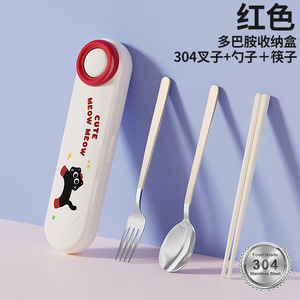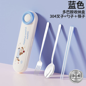 304不锈钢筷子勺子套装便携餐具盒上班族小学生收纳盒餐具三件套
