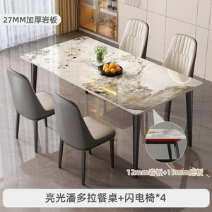 岩板餐桌轻奢现代简约家用小户型简易客厅饭桌子长方形餐桌椅组合