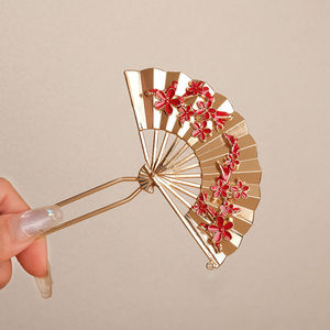 新中式古风红色扇子步摇发簪女高级感流苏发钗汉服马面裙发簪发饰