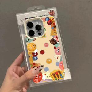 可爱M豆表情适用苹果15PROMAX手机壳iPhone14小众13荔枝纹12软壳x