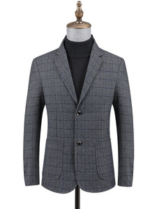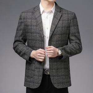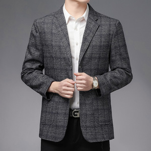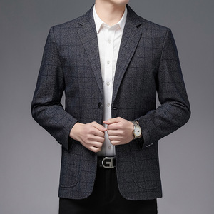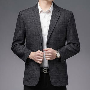 男士休闲西装商务通勤免烫父亲中年爸爸格子格纹单西服便服春秋款