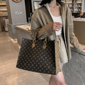 跨境时尚拼色手提包大容量质感欧美印花托特包实用百搭上班通勤女