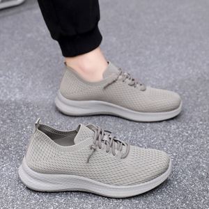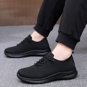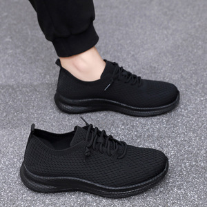 春秋新款透气飞织鞋男士一脚蹬轻便软底运动休闲鞋老北京布鞋男鞋