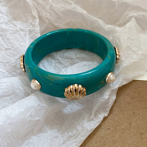 欧美跨境橄榄绿亚克力光面晕染手镯个性时尚手环轻奢高级感手饰女