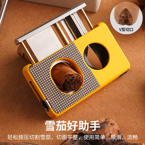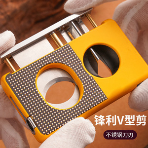 新款专业男士雪茄烟具便携高档锋利v型雪茄刀送礼佳品皮革雪茄剪