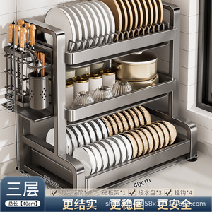 厨房置物架沥水碗架不锈钢碗碟收纳架家用餐具多功能放碗盘筷子柜