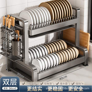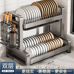 双层【升级特粗】星空灰40CM+刀筷架+砧板架[全配]