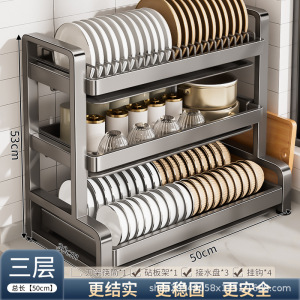 三层【升级特粗】星空灰50CM+刀筷架+砧板架[全配]