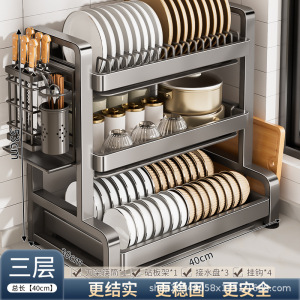 三层【升级特粗】星空灰40CM+刀筷架+砧板架[全配]