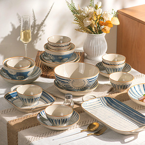 日式复古陶瓷饭碗家用釉下彩餐具2025新款特别好看的米饭碗乔迁碗
