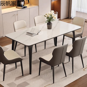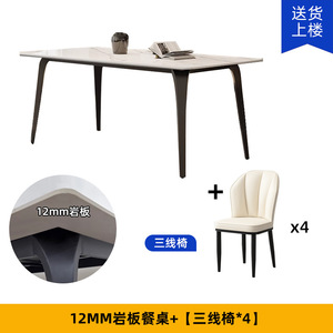 轻奢岩板餐桌椅组合现代简约新款家用小户型长方形岩板极简餐桌椅