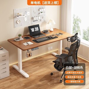 单电机+桌面加厚*18mm【胡桃色x白腿】