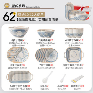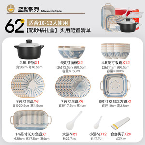 蓝韵12人食62件套明火砂锅配置礼盒包装
