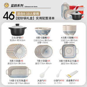 蓝韵10人食46件套明火砂锅配置礼盒包装