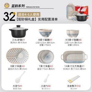 蓝韵6人食32件套明火砂锅配置礼盒包装