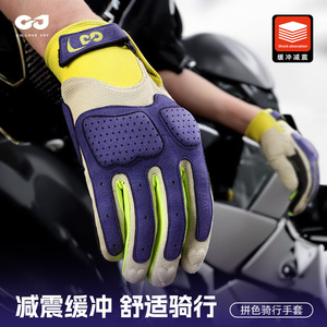 摩托车骑行手套女夏季防晒透气赛车骑士复古机车手套男全指可触屏