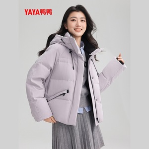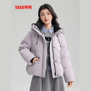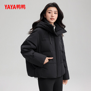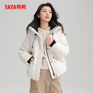 鸭鸭短款加厚羽绒服女2025秋冬新品百搭立领连帽直筒外套J