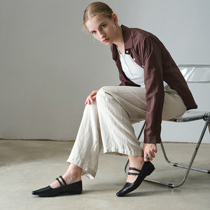 zijin家~质感在线!尖头搭扣浅口小方头一字带玛丽珍单鞋女秋新款