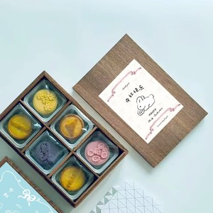胡桃色6格天地盖空木盒外径约26.4*18*7cm【单格约8x8cm】+米色中秋波浪蝴蝶结兔子贴纸