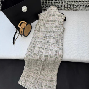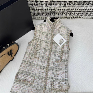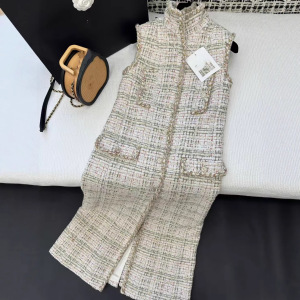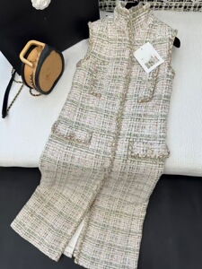 南油直供25早秋款撞色粗花呢无袖小香风马甲连衣裙气质多口袋上衣