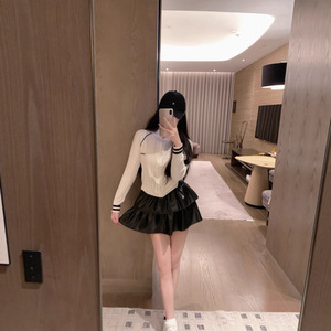 2025早秋新款学院风字母提花长袖针织开衫女外套减龄刺绣皮裙套装