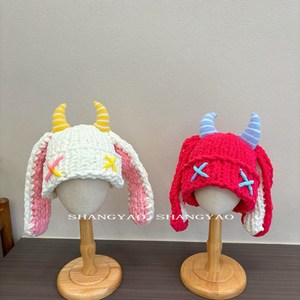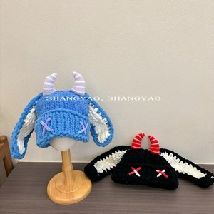 亲子款搞怪可爱小恶魔毛线帽冬季加厚保暖牛角套头帽儿童针织帽子