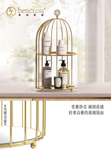 收纳】本心本来免打孔浴室置物架化妆品鸟笼贝壳旋转托盘金