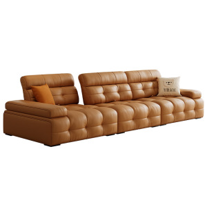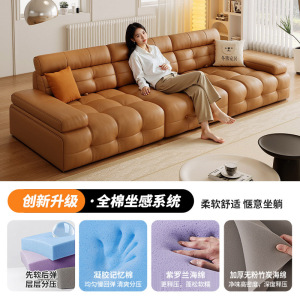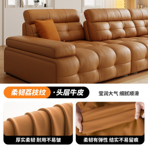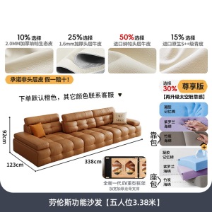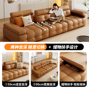 桐语特 劳伦斯功能法式奶油客厅小户型可调节靠背宽坐深真皮沙发