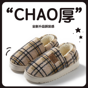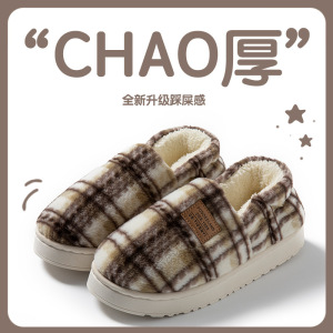 情侣棉拖鞋包跟女士冬季居家用室内保暖鞋秋冬天厚底月子毛拖鞋男