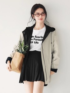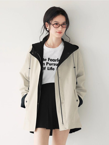伊*L撞色拉链门襟连帽短款派克式风衣女2025秋季新款1G1960231