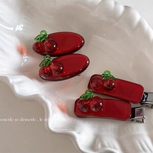 冰透红色樱桃发夹发饰鸭嘴可爱头饰温柔侧边少女刘海夹碎新款发卡