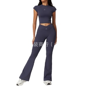 aloyoga官网紧身速干瑜伽套装外穿跑步运动短袖套装美背健身服女