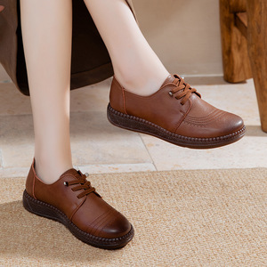 2025秋季新款平底复古民族风女鞋牛筋软底深口一脚蹬中老年妈妈鞋