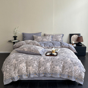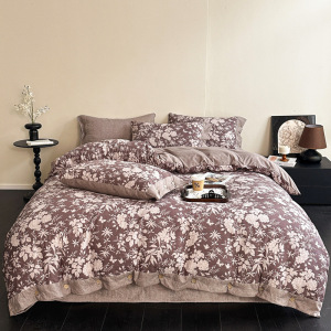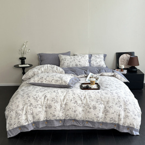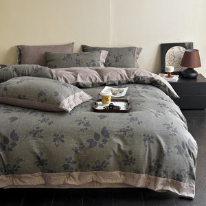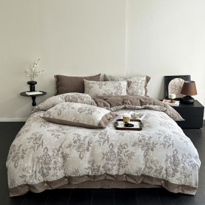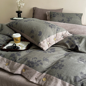 复古风亚麻双层纱四件套秋冬加厚被套罩床单四季通用高档床上用品