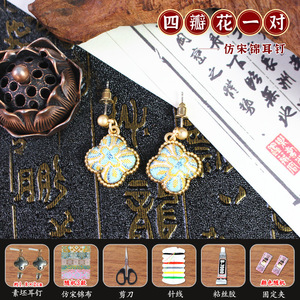 【耳钉】四瓣花1对材料包-宋锦随机3片