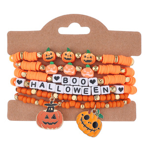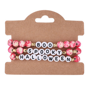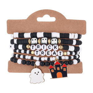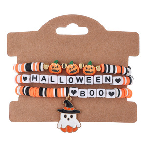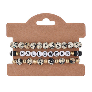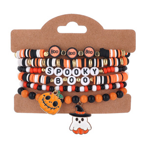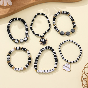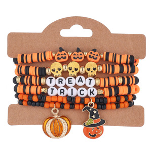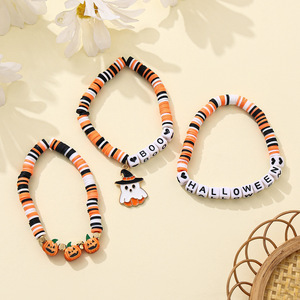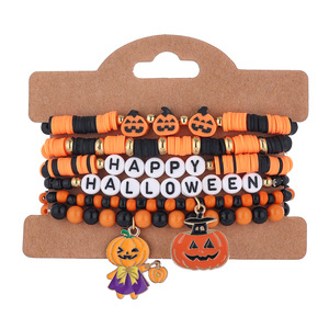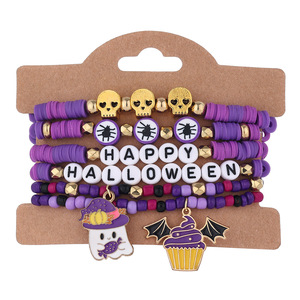 欧美风格万圣节主题软陶手链套装 黑色 橙色 紫色手链 周长18.5cm