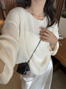 设计感后背绑带镂空针织衫女2025早秋慵懒风宽松百搭洋气罩衫上衣