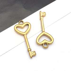不锈钢光面爱心锁头钥匙吊坠挂饰真空镀手链项链diy饰品配件