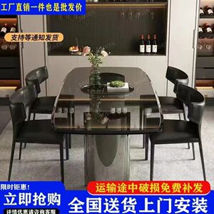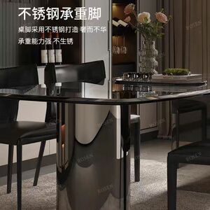 意式极简新款钢化玻璃餐桌家用小户型饭桌长方形不锈钢轻奢餐桌椅