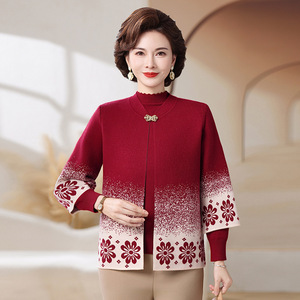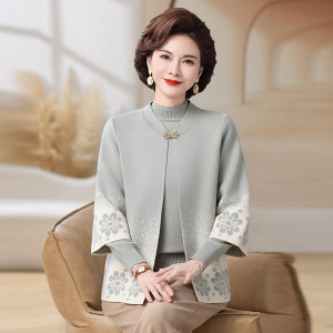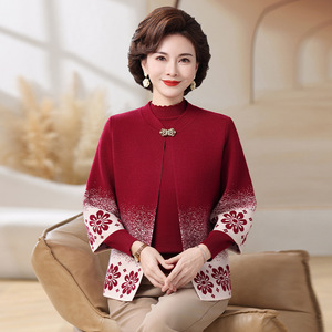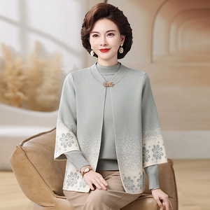 2025年妈妈春秋新款针织两件套装中老年人女装秋冬季毛衣开衫外套
