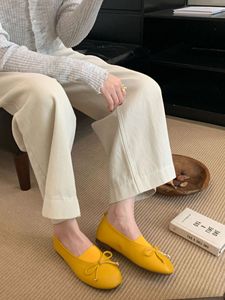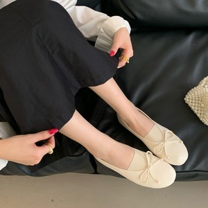 软面平底春夏仙女新款时髦松紧带蝴蝶结圆头芭蕾舞鞋舒适女单