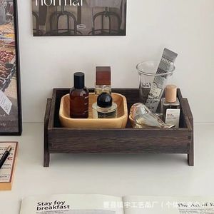 复古木质桌面收纳盒护肤品化妆品收纳木盒桐木多功能玄关整理盒